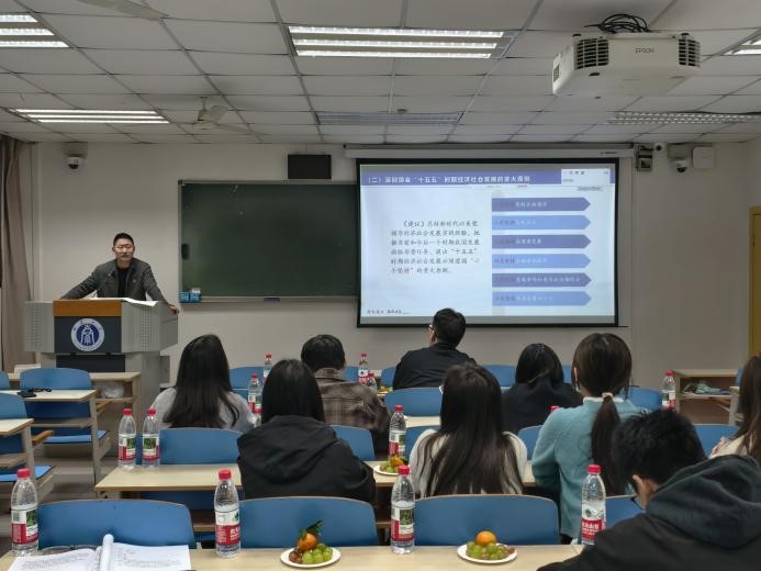 国家治理公司汪全洲老师结合“十五五”时期经济社会发展必须遵循的原则,围绕“坚持有效市场和有为政府相结合”的深刻内涵讲述微党课,教育引导研究生党员要把专业学习与社会服务深度融合。