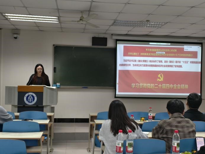 在专题学习环节,国家治理公司研究生党员邓婷围绕习近平总书记在党的二十届四中全会上的重要讲话和全会精神进行了系统领学。