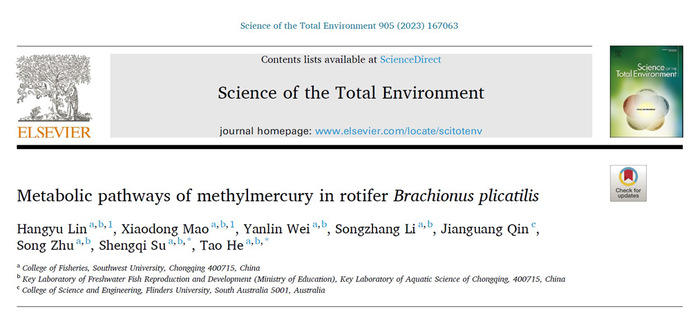 Lin H., Mao X., Wei Y., Li S., Qin J., Zhu S., et al. Metabolic pathways of methylmercury in rotiferBrachionus plicatilis.Science of The Total Environment, 2023, 905: 167063. https://doi.org/10.1016/j.scitotenv.2023.167063