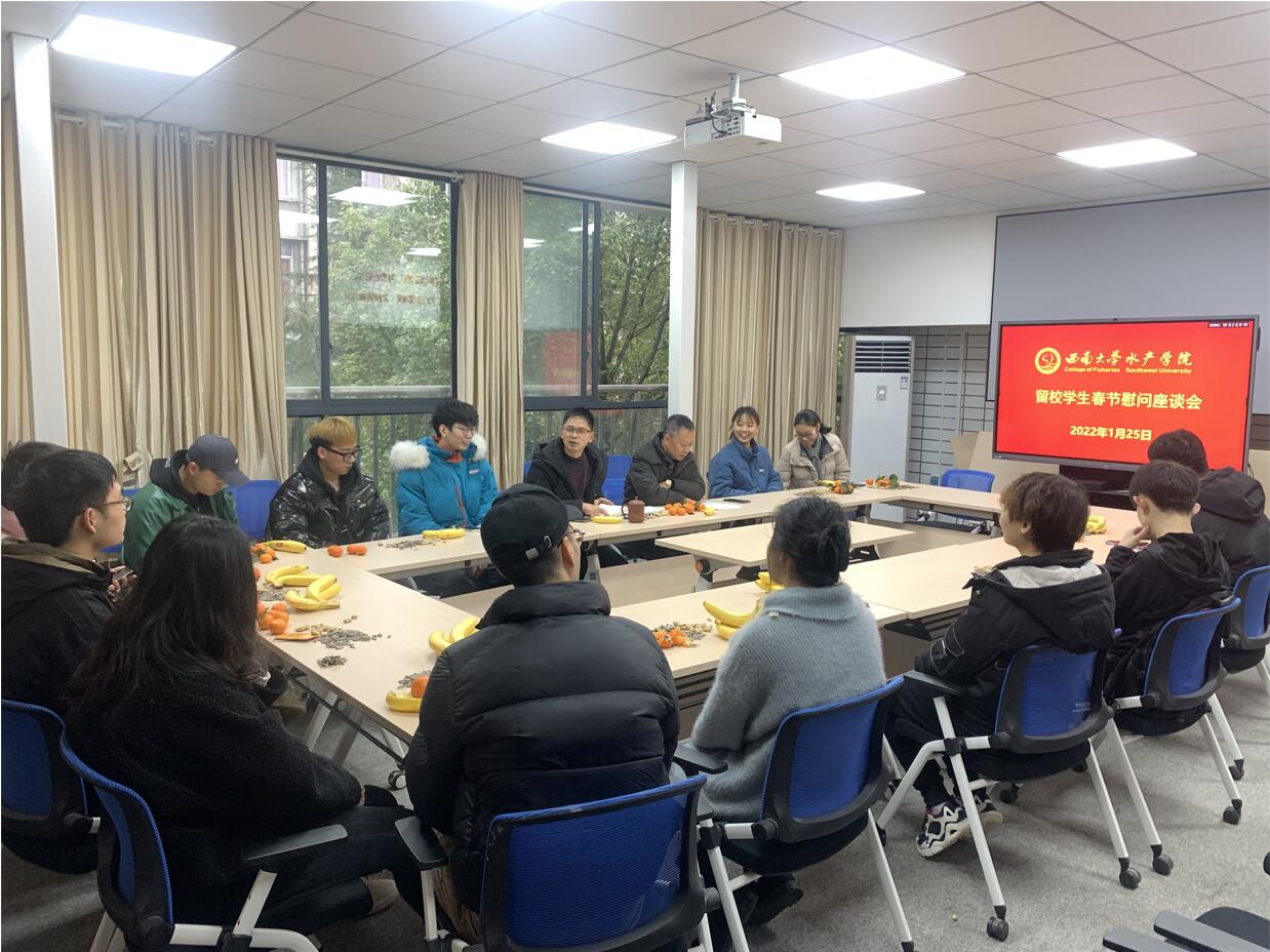 最后,朱汉春书记与同学们一起回忆了304永利集团自组建以来经历的种种事情,讲了一个又一个水产故事,让同学们了解了公司这一年以来取得的成绩,并对同学们寄予了厚望,“今年寒假留校过一个特别的年,希望大家在刻苦学习、加强锻炼的同时,要做好疫情防控工作,注意自身和实验室安全,利用好在公司的时光,更加充实和提高自己,将个人的就业事情放心上,将个人专业所学与公司发展、社会发展紧紧结合在一起。祝各位学子在2022年再接再厉,勇创佳绩,过一个平安、祥和、幸福、有意义的中国年。”