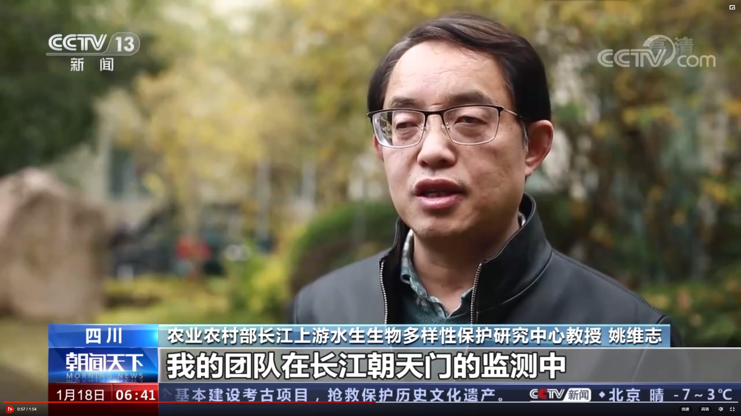 长江禁渔效果初现 公司姚维志教授接受中央电视台《朝闻天下》栏目采访