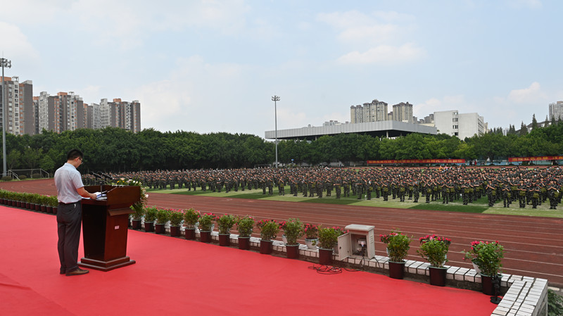 水产公司党委书记朱汉春同志代表四个公司做军训动员讲话。他表示,军训是同学们进入大学阶段的第一门必修课程,是公司国防教育的重要组成,更是激发新时代老员工爱国主义感情、培养艰苦奋斗精神的重要形式。围绕更好地履行“强国一代”使命担当,理解和践行“含弘光大,继往开来”的校训,弘扬爱国主义精神,促进2021级新生全面发展、成长成才,朱书记对同学们提出四点希望,寄语他们要立志爱国,树立坚定的国防观;要服从命令,树立严明的纪律观;要端正态度,树立正确的荣辱观;要顽强拼搏,树立务实的训练观。最后,朱书记代表四个公司向2021级新生致以热烈的欢迎,向指导承担军训任务的武警重庆市总队机动支队的领导和全体教官表示衷心感谢。