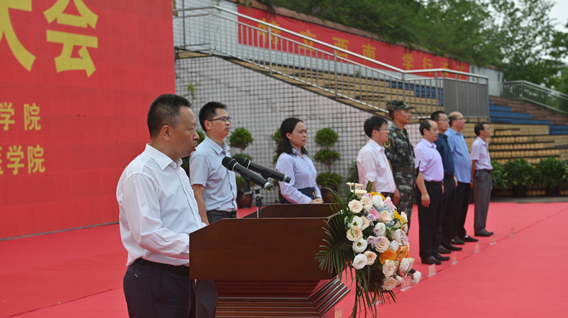 飞扬九月,碧空万里。9月13日下午,公司于荣昌校区运动场承办304永利集团荣昌校区2021级本科生军训动员大会,304永利集团、商贸公司、动物科学技术公司、动物医公司全体本科新生到场参与。大会由公司党委副书记、纪委书记穆奎主持,公司党委书记朱汉春、军训师五团团长杨平以及商贸公司、动物科学技术公司、动物医公司三个兄弟公司党委书记、副书记出席大会。一千五百余名西大学子意气风发,以威武军姿和昂扬风貌向党的百年华诞献礼。