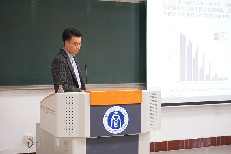 在本期青英讲堂中,吴荣华老师从研究思路、技术、成果等方面与大家分享了其研究生、博士后期间的主要研究工作,并介绍了他在美国的访学经历,最后向在座的员工提出关于从事水产科研的五条建议:做一个好的时间管理者;与时俱进,多看优质文献;积极主动与导师沟通;勤能补拙;三思而后行。冯科老师主要向大家分享了他关于GnRH3在斑马鱼性别分化中的功能研究和美国访学经历,冯老师对他研究GnRH3对于斑马鱼性别影响的研究思路的转变历程及各个阶段的研究结果为大家进行了详细介绍。在两位老师分享结束后,现场的同学就自己的兴趣和疑问之处与老师进行了交流。