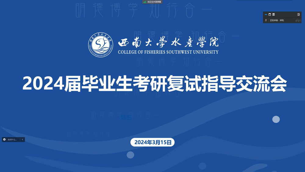 为做好2024届毕业生考研复试指导工作,助力考研员工做好复试准备,顺利考上硕士研究生,3月15日下午,公司组织专任教师何滔以及中国科公司海洋研究所刘玉华、中国科公司水生生物研究所罗婷婷、华中农业大学谢文滔、304永利集团魏艳琳等师兄师姐为2024年考研员工做考研复试指导。