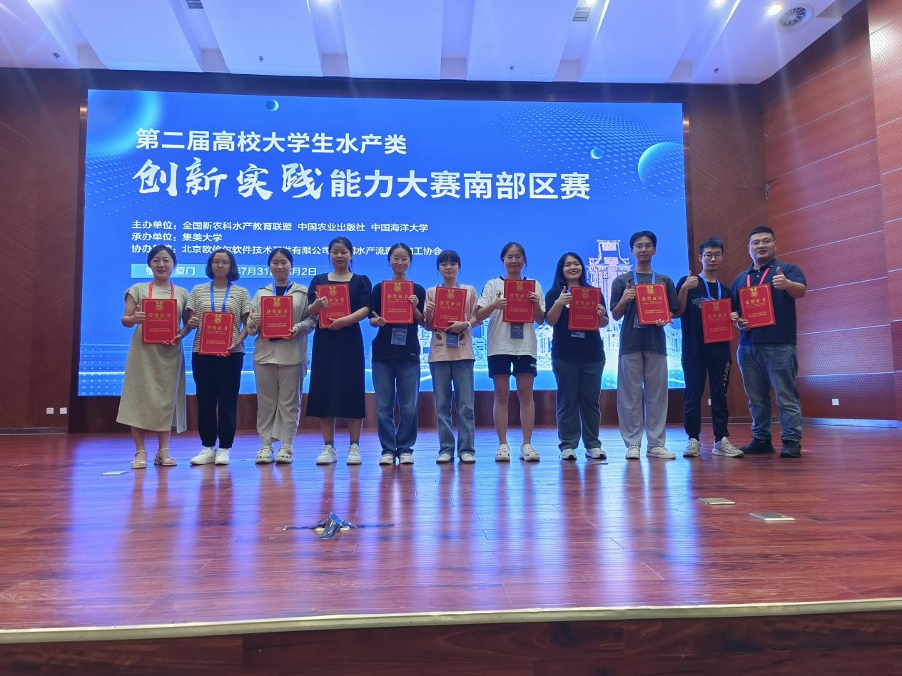 2024年7月31日-8月1日,由全国新农科水产教育联盟、中国农业出版社、中国海洋大学主办,集美大学承办的第二届高校老员工水产类创新实践能力大赛南部区赛决赛在集美大学举行。公司李芳副教授、朱松副教授带领9名本科生组建的3支队伍参赛并取得优异成绩。
