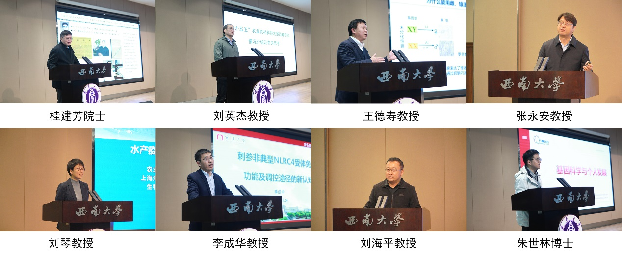 开幕式结束后,桂建芳院士作了题为“多倍体鲫属复合种的遗传基础解析与育种技术创新”的大会特邀报告。报告中,桂院士详细介绍了多倍体鲫独特的遗传特性、精准育种的挑战以及最新的技术创新成果,为与会者提供了宝贵的学术启发。随后,刘英杰教授、王德寿教授、张永安教授、刘琴教授、李成华教授、刘海平教授、朱世林博士分别以“十五五农业科技战略研究及相关思考”“罗非鱼经济性状遗传解析与基因编辑新种质创制”“草鱼B细胞的免疫功能和分化路径”“水产疫病免疫综合防控技术探索”“刺参非典型NLRC4受体免疫功能及调控途径的新认知”“新西部大开发视域下水产学科发展和思考”“基因科学与个人发展”为题的主题报告。304永利集团经理刘海平教授、科技处副处长徐洛浩教授主持学术报告环节。